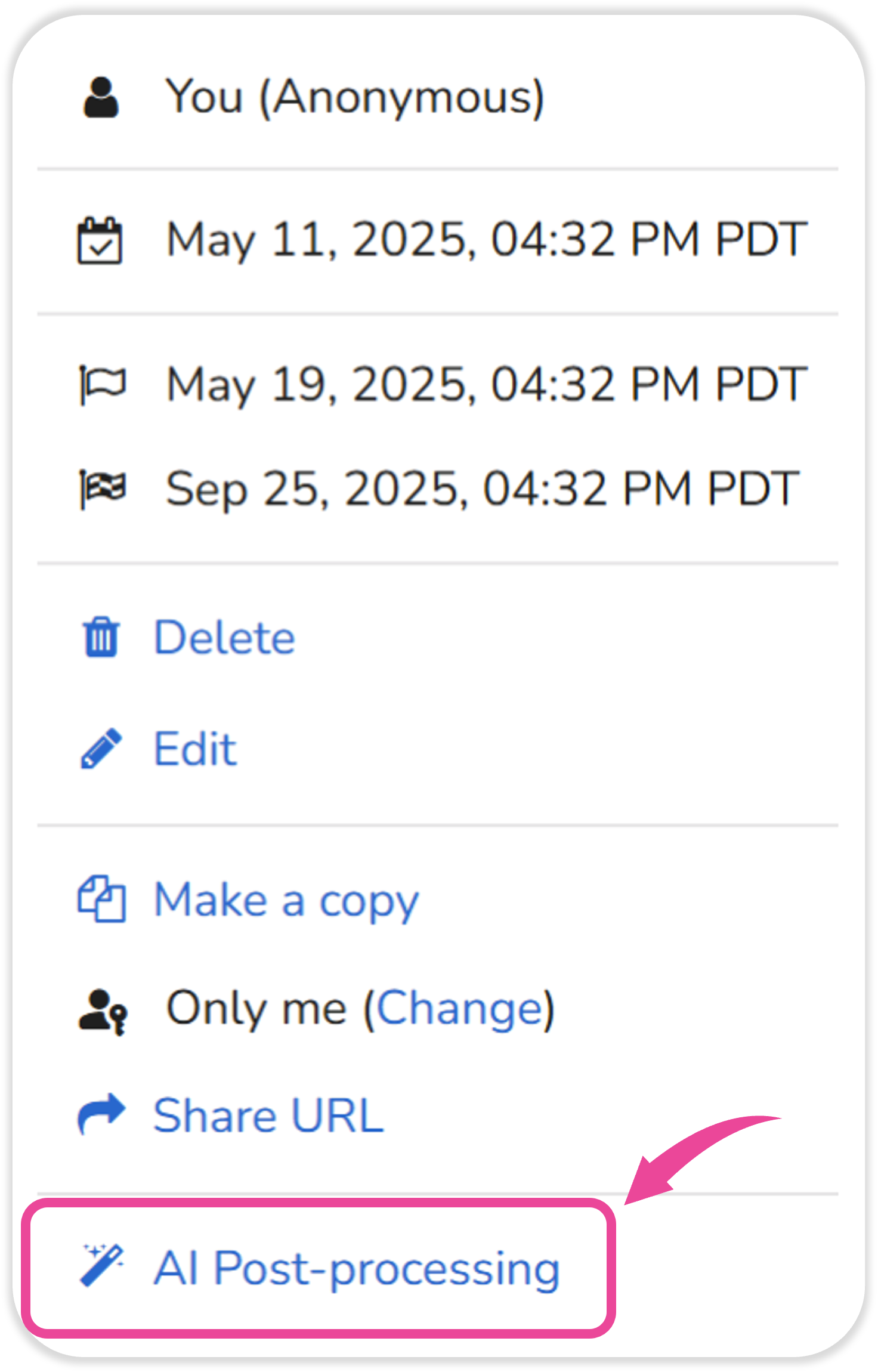 While AI may not be ideal for generating entirely new arguments, it can help interpret and organize the nuanced content submitted by human experts on each topic page. To assist with this, the platform includes a built-in AI tool. You can access this tool by clicking the three dots next to the topic title and selecting AI Post-Processing from the menu. This opens a new page where you can ask questions about the topic. Responses are currently generated using ChatGPT. The content submitted on the topic page is sent to ChatGPT as contextual data to guide the responses it provides. (Also see this.)